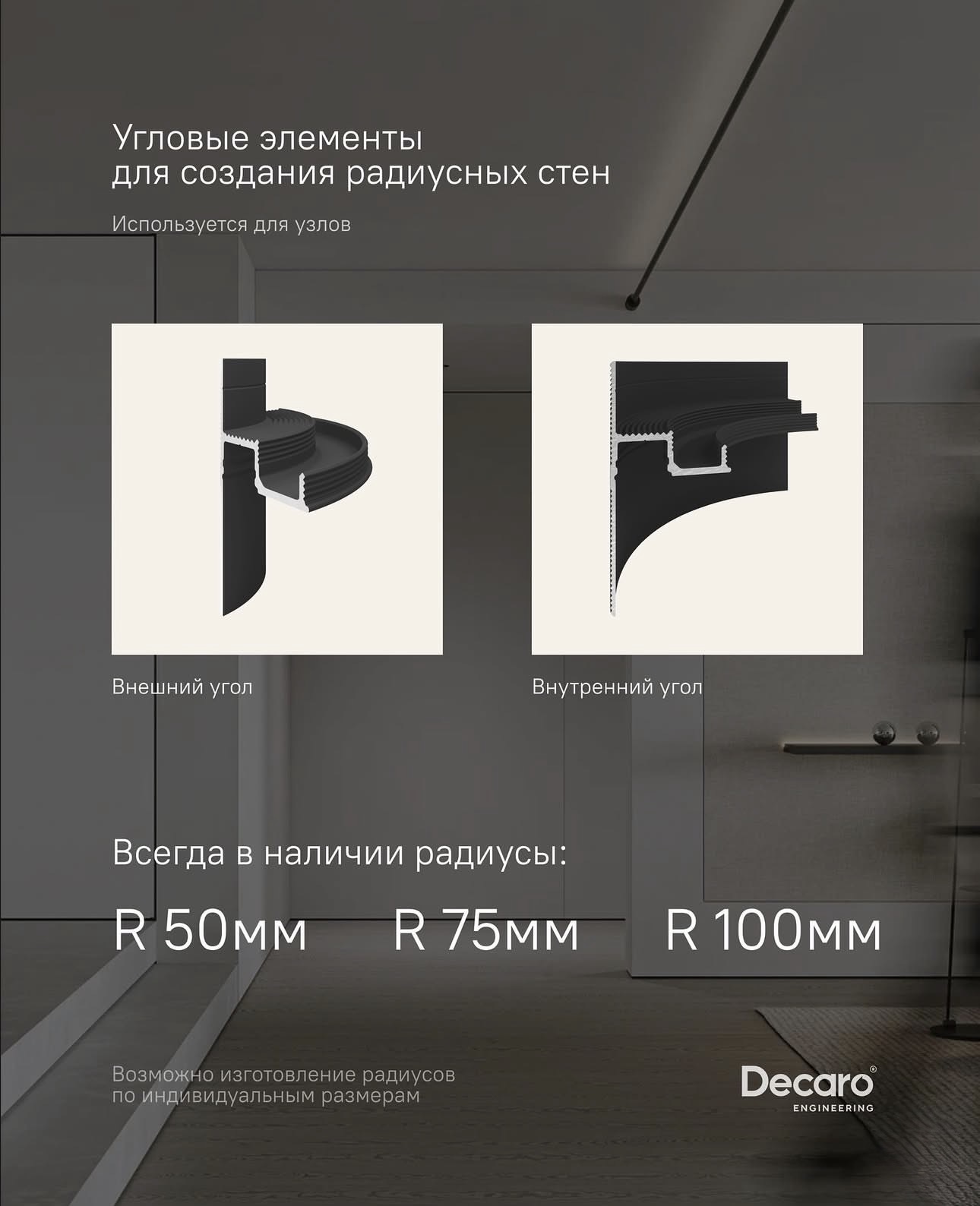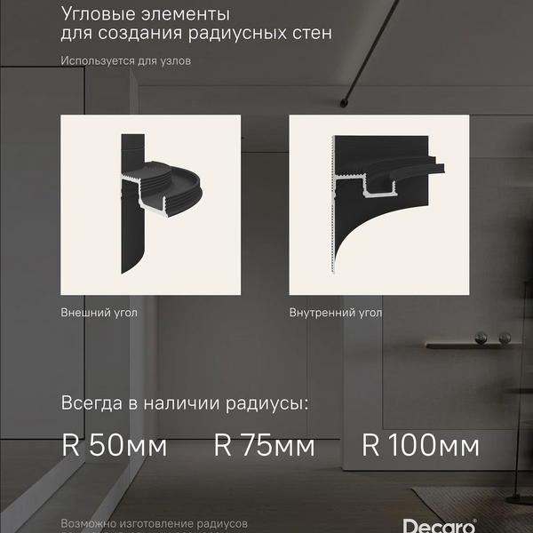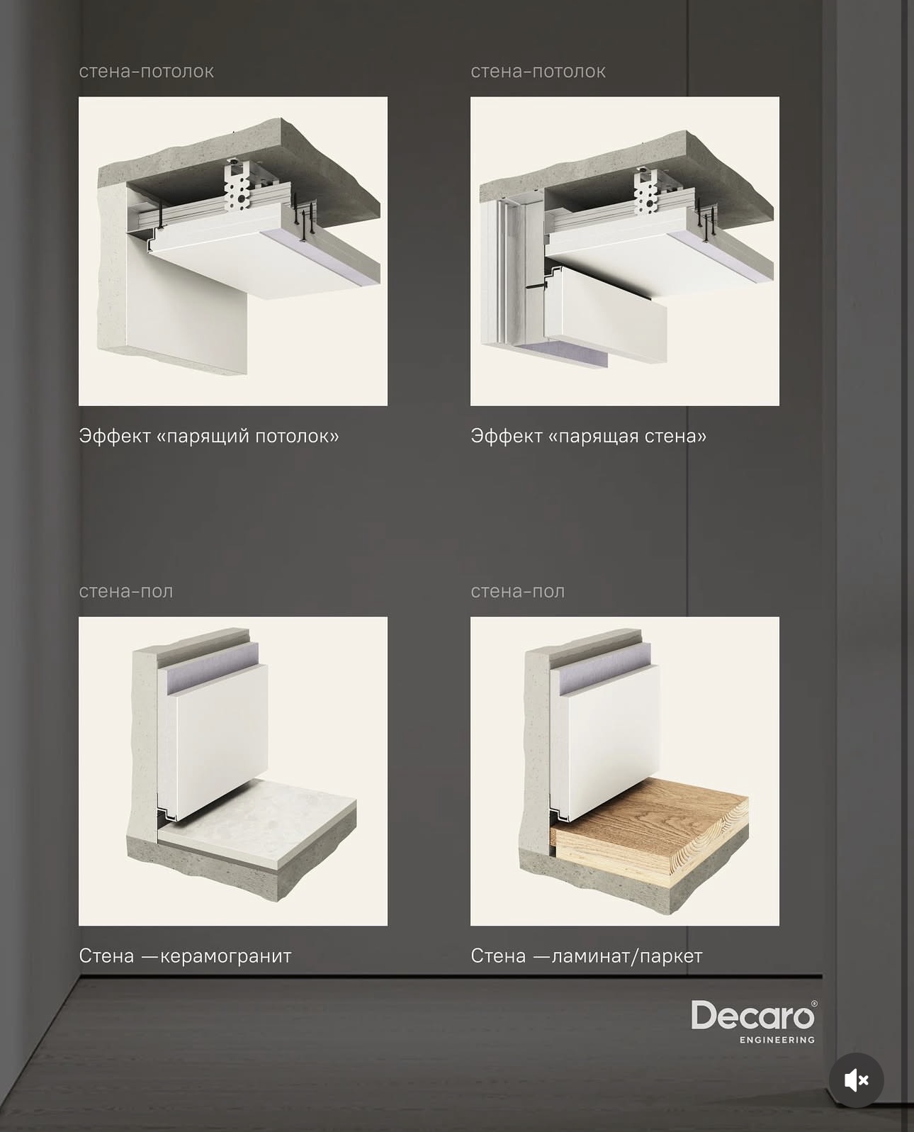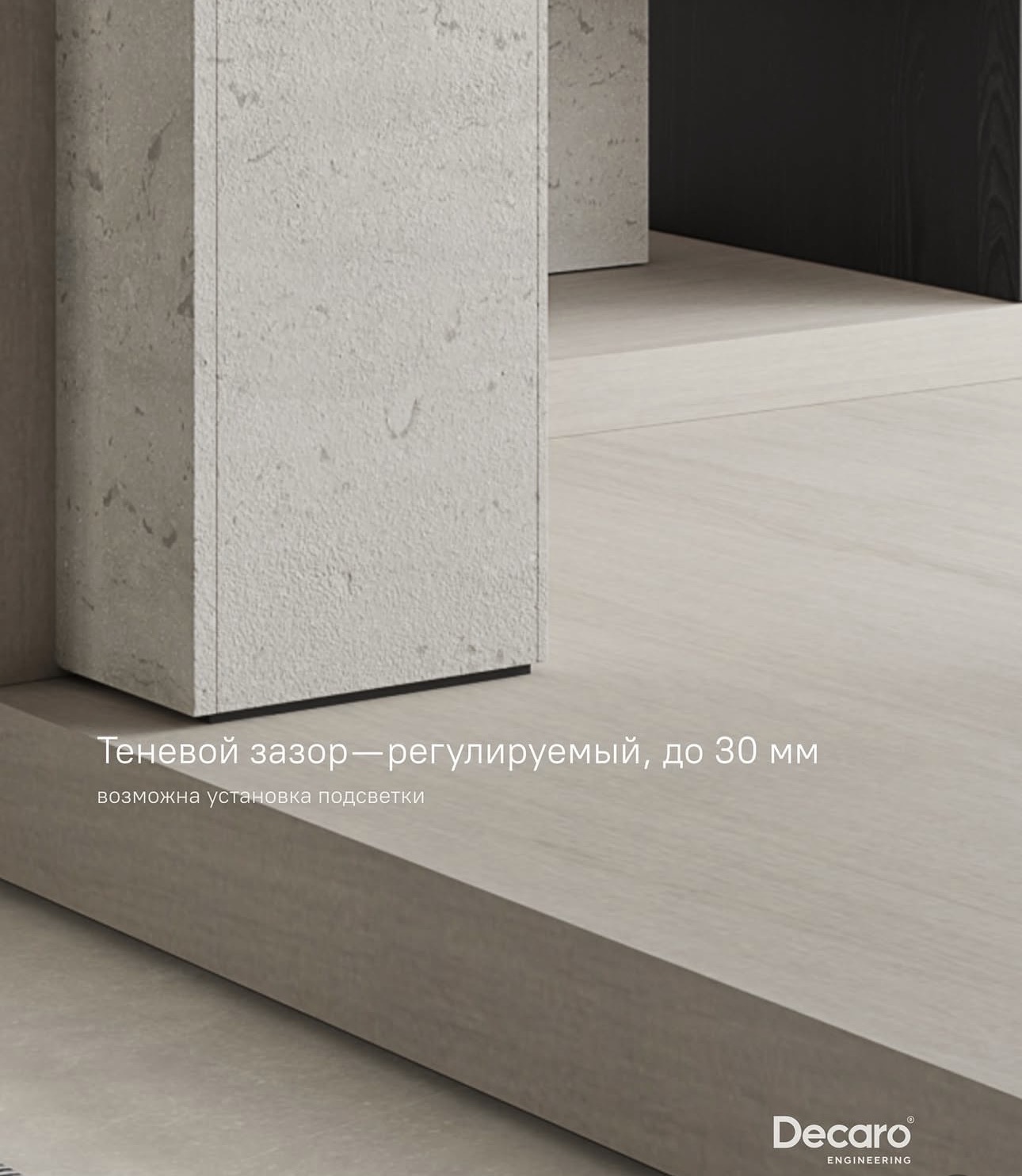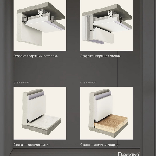 - Создает эффект "парящих" стен и потолка