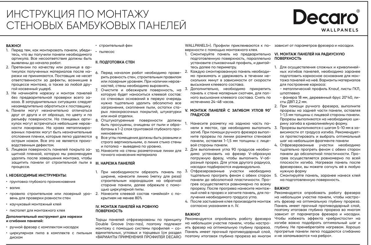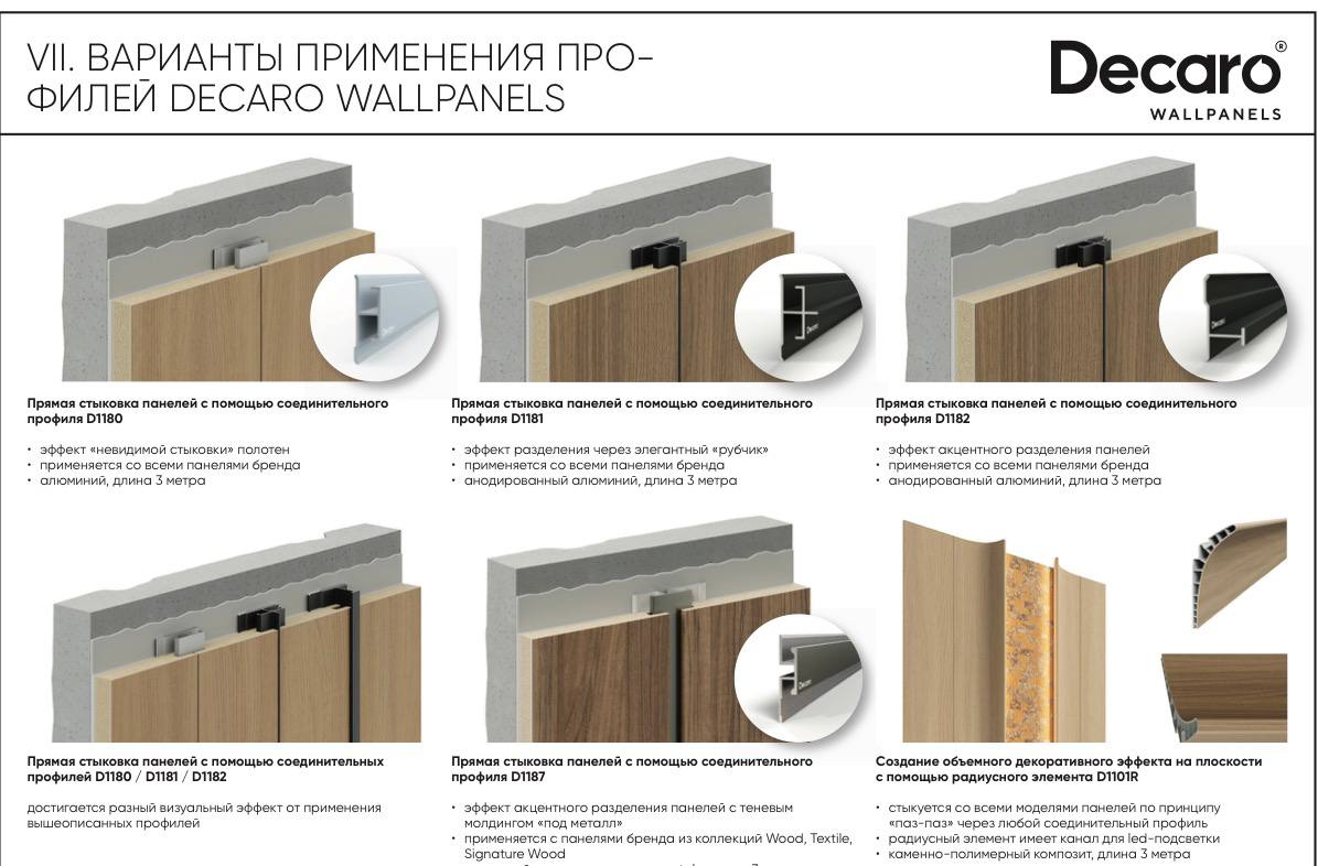 При работе с премиальными материалами, такими как бамбуковые панели Decaro, крайне важна чистота каждой линии. Соединительный и монтажный профиль выполняет не только техническую функцию фиксации, но и является важным элементом дизайна. Он скрывает технологические зазоры, защищает края панелей от повреждений и помогает объединить полотна в единую интерьерную систему.