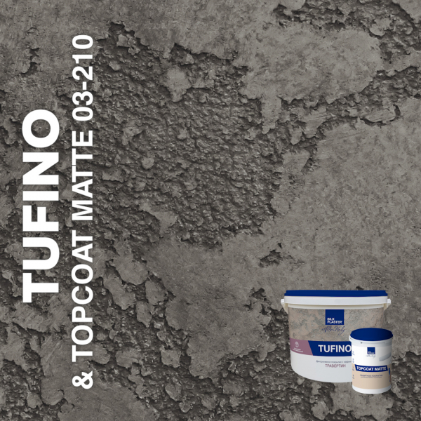 Фактурная декоративная штукатурка TUFINO на известковой основе с натуральным мраморным среднезернистым наполнителем предназначена для создания покрытий с эффектами травертина, известняка, микроцемента, оштукатуренной стены и другими. Материал на водной основе, без запаха, безопасен для людей и окружающей среды. В комплексе с защитным покрытием Topcoat MATTE штукатурка TUFINO создает влагостойкое, неприхотливое в эксплуатации, долговечное покрытие.