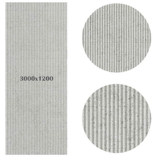 • Монолитный монтаж (3000 мм): Высота листа 3 метра — это стандарт для премиальной отделки. Она позволяет облицевать стену от пола до потолка без горизонтальных стыков, сохраняя непрерывность волнообразного рисунка.