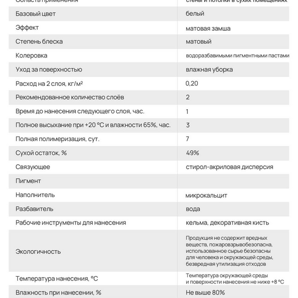 • Экологичность и безопасность: Продукт на стирол-акриловой дисперсии не содержит вредных веществ, пожаровзрывобезопасен и безопасен для человека и окружающей среды.