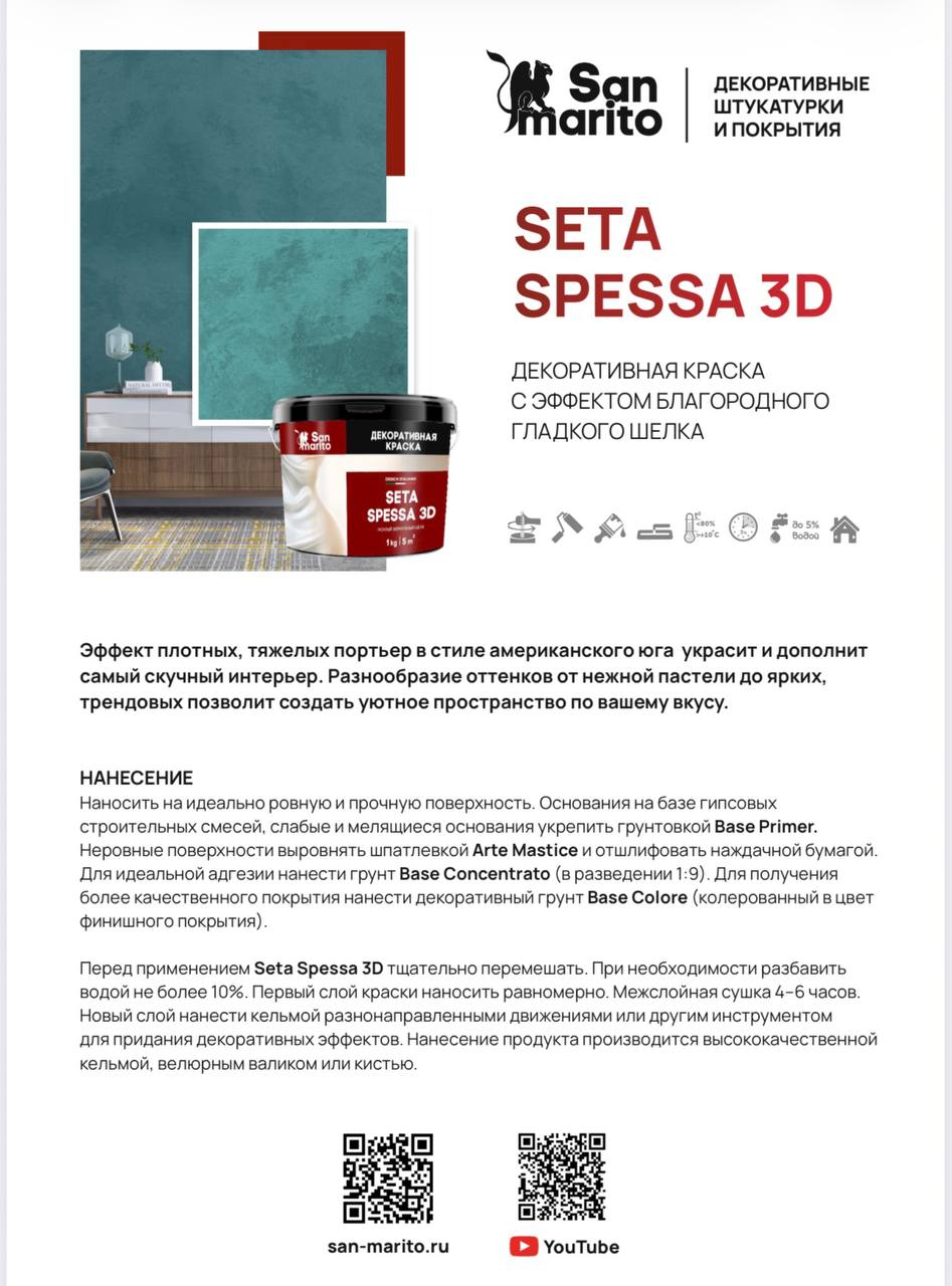 Декоративная краска San Marito Seta Spessa 3D с эффектом плотного шелка