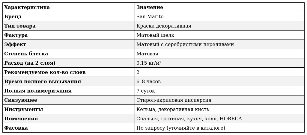 • Творческий потенциал: Покрытие отлично сочетается с другими материалами San Marito, позволяя реализовывать многослойные дизайнерские идеи и подчеркивать индивидуальность владельца.