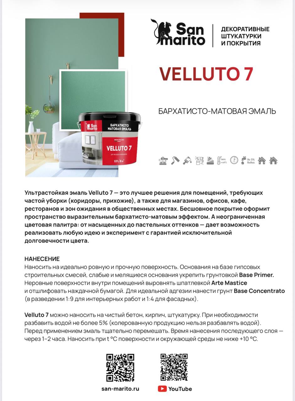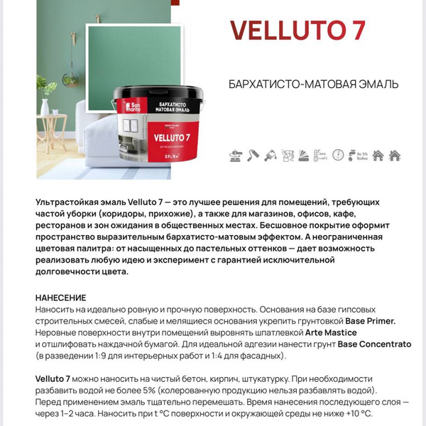 Доверьте долговечность вашего интерьера экспертам — выбирайте San Marito Velluto 7 в бутике Decopro.by!