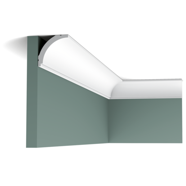 Карниз потолочный CX109 изготовлен из дюрополимера. Благодаря прочности и антиударным свойсвам может использоваться в качестве напольного плинтуса. Изготавливается также в гибком виде flex - CX109F. Монтируется на клей.
