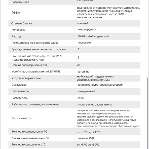 • Экологичность: Состав полностью безопасен, не выделяет вредных веществ и подходит для использования в детских комнатах и медицинских учреждениях.