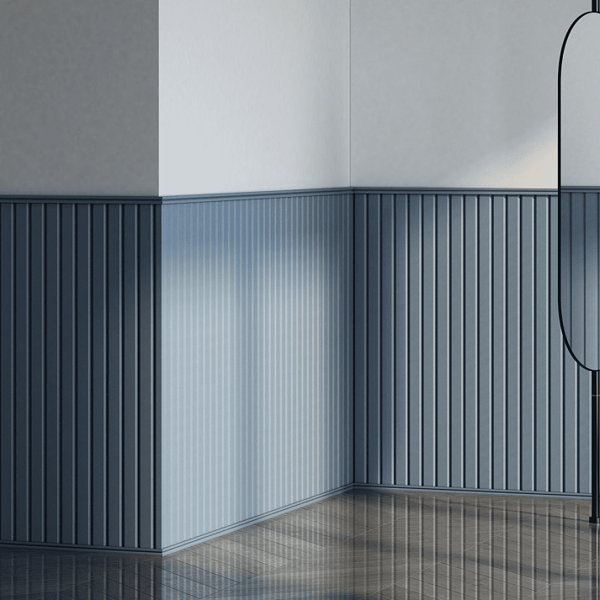 Молдинги могут быть полукруглыми или угловатыми, имитировать рейки или брус. Ими можно оформить зону в ванной, гостиной, спальне. У панелей гладкая отшлифованная поверхностью, у которой повышенная адгезия к тонирующим состава. Это позволяет легко изменять первоначальный белый цвет молдинга на любой другой без использования грунтовки и прочих укрепительных основ.