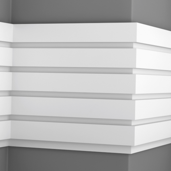 Молдинги могут быть полукруглыми или угловатыми, имитировать рейки или брус. Ими можно оформить зону в ванной, гостиной, спальне. У панелей гладкая отшлифованная поверхностью, у которой повышенная адгезия к тонирующим состава. Это позволяет легко изменять первоначальный белый цвет молдинга на любой другой без использования грунтовки и прочих укрепительных основ.
