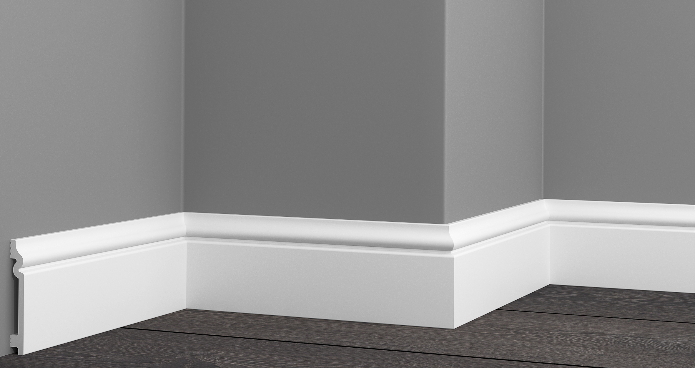 Напольный плинтус Glanzepol из XPS HD полимера — это инновационное решение для финишной отделки пола, сочетающее в себе эстетику лепного декора и исключительные эксплуатационные характеристики. Изготовленный из полимера высокой плотности (дюрополимера), этот плинтус идеально подходит как для жилых помещений, так и для зон с высокой проходимостью.